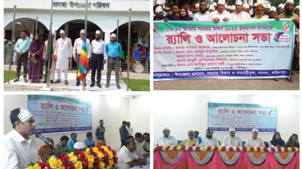 আরিফুল ইসলাম, সালথা (ফরিদপুর প্রতিনিধিঃ ‘সমবায়ে গড়ছি দেশ স্মার্ট হবে বাংলাদেশ’ এই প্রতিপাদ্য বিষয়কে সামনে রেখে ফরিদপুরের সালথায় বর্ণাঢ্য আয়োজনে জাতীয় সমবায় দিবস-২০২৩ পালিত হয়েছে। উপজেলা প্রশাসন, সমবায় বিভাগ ও